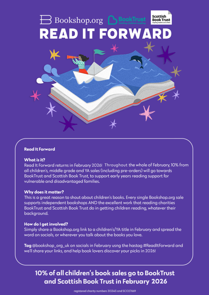 This February, we invite you to Read It Forward. 10% of all children’s book sales through Bookshop.org go to BookTrust and Scottish Book Trust in February 2026.