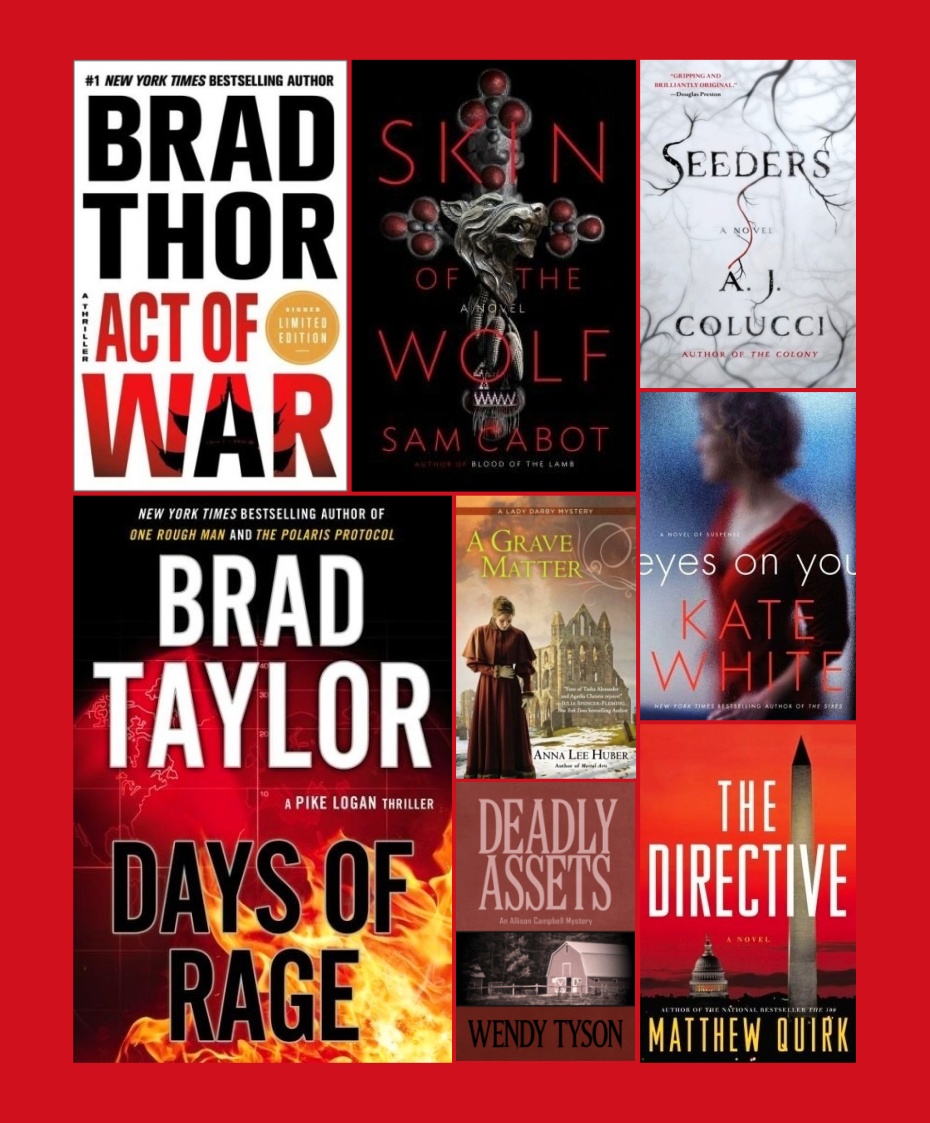 Matthew Quirk gives us The Directive, a tale of two brothers, millions of dollars–and the heist of a lifetime. A.J. Colucci is out with her second thriller, Seeders, which Douglas Preston called “a bravura performance, as good as Crichton, with vivid characters, crisp writing, and exquisitely creepy science.” How can you resist!