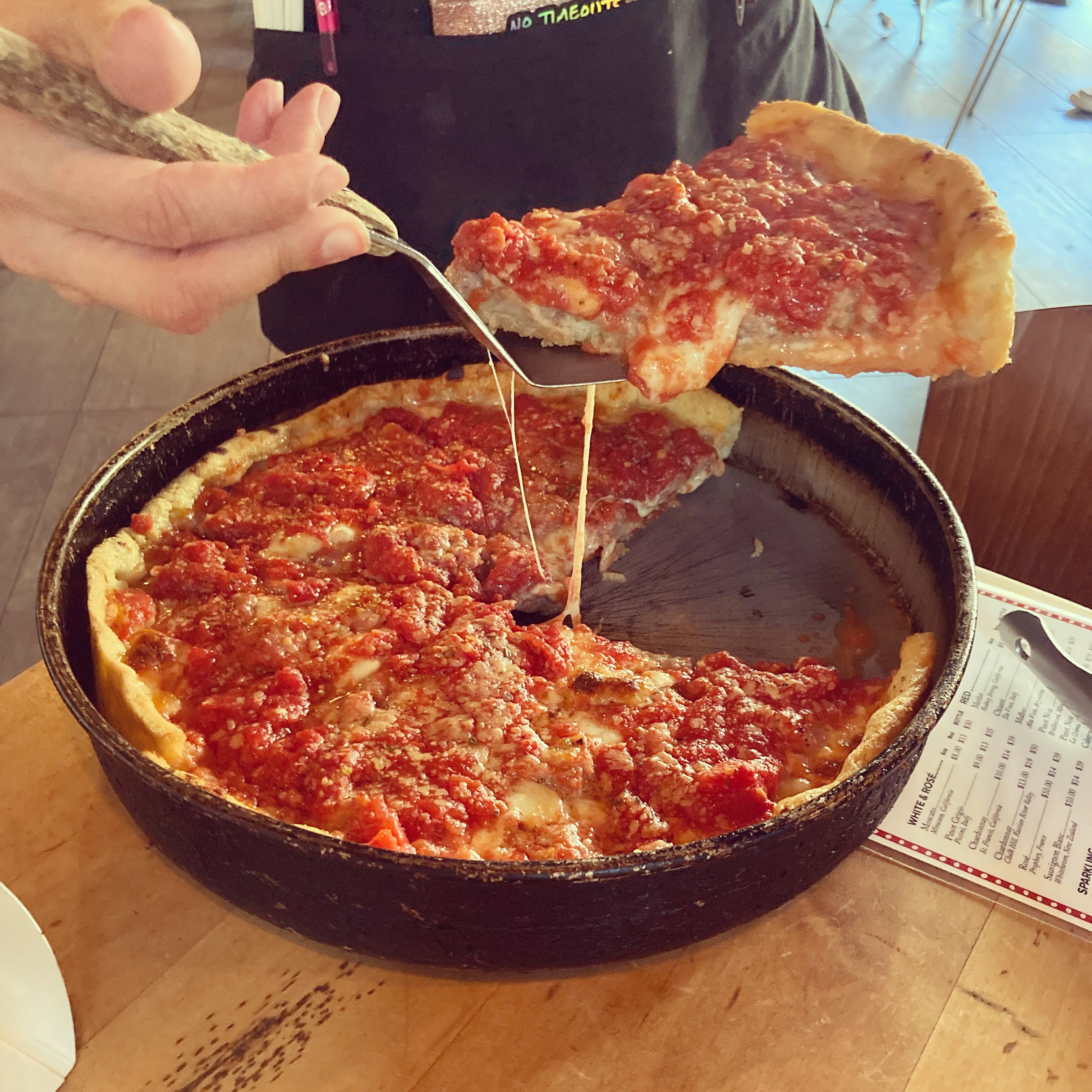We made sure to have Chicago deep dish “pizza” at Lou Malnati’s, and my husband enjoyed the Italian Beef sub at Portillo’s. Luckily, both places had nice patios outside where we ate. We also hit the Museum of Contemporary Art, and my son brought the baby along. He seemed to enjoy his first museum visit!