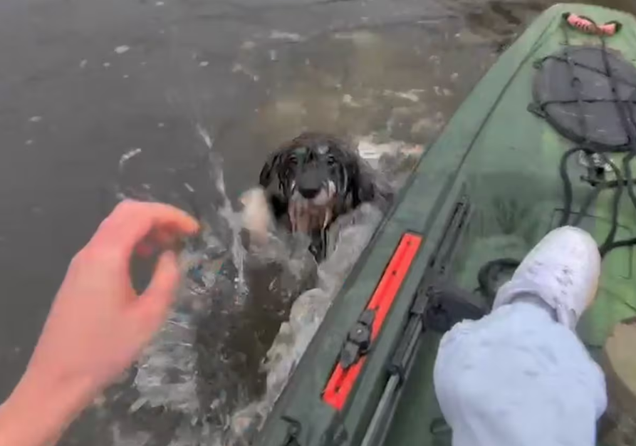 Teen grabs kayak, paddles through icy pond to rescue neighborhood dog