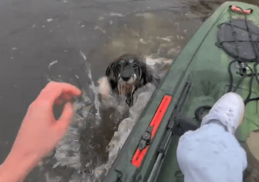 “I’m here buddy,” Hugh Pinneo, 18, said to the struggling dog as he rescued him. “You’re scared, I’m scared, too.”